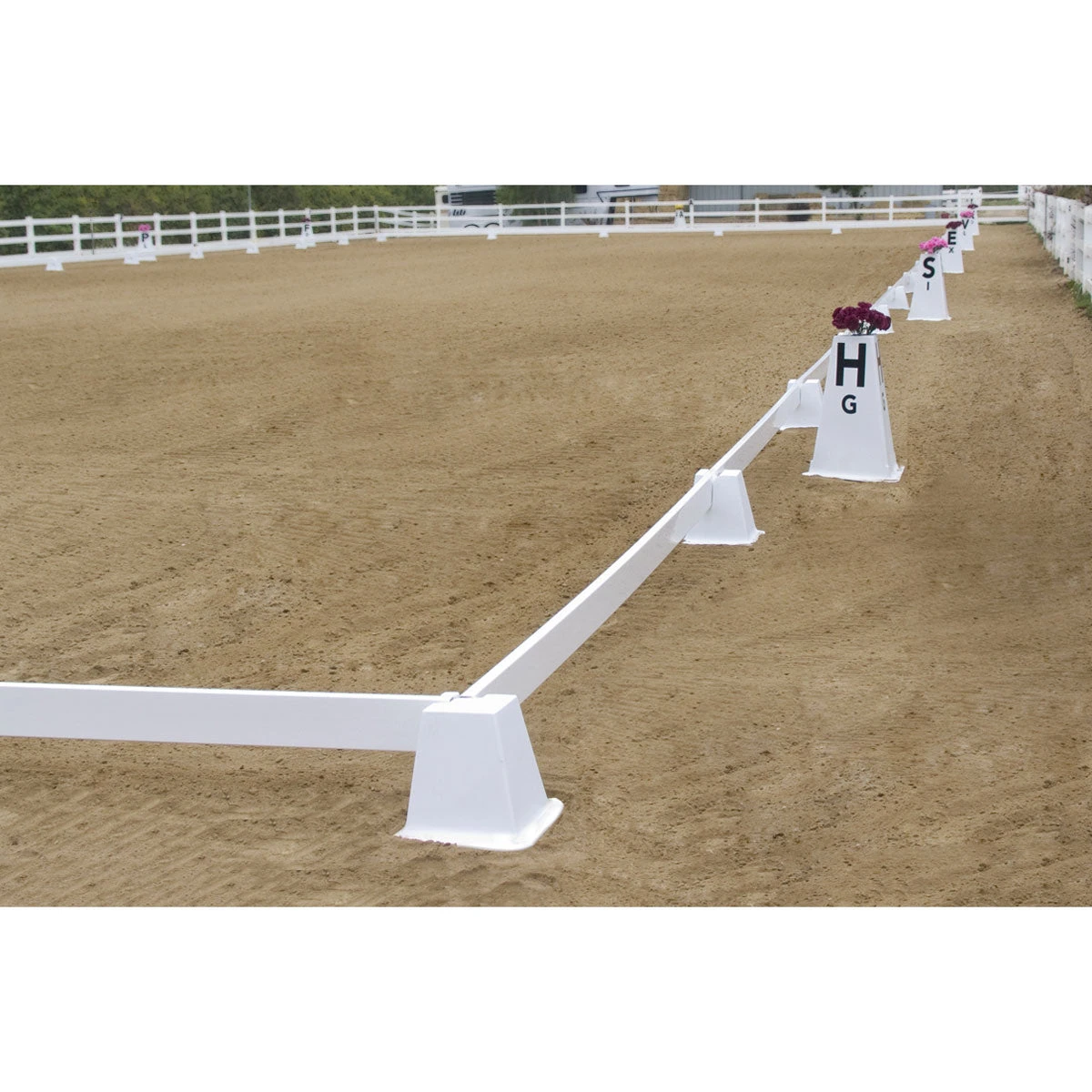 The Wellington Arena features a set-in design that is user friendly for set up. The rails are pre-measured so you simply place the rail into the supports which assures perfect increments every time. Supports are made with white UV stabilized polyethylene. The 100% UV treated material is super tough and durable and will withstand abuse and all weather conditions, including high wind. Made in the USA.