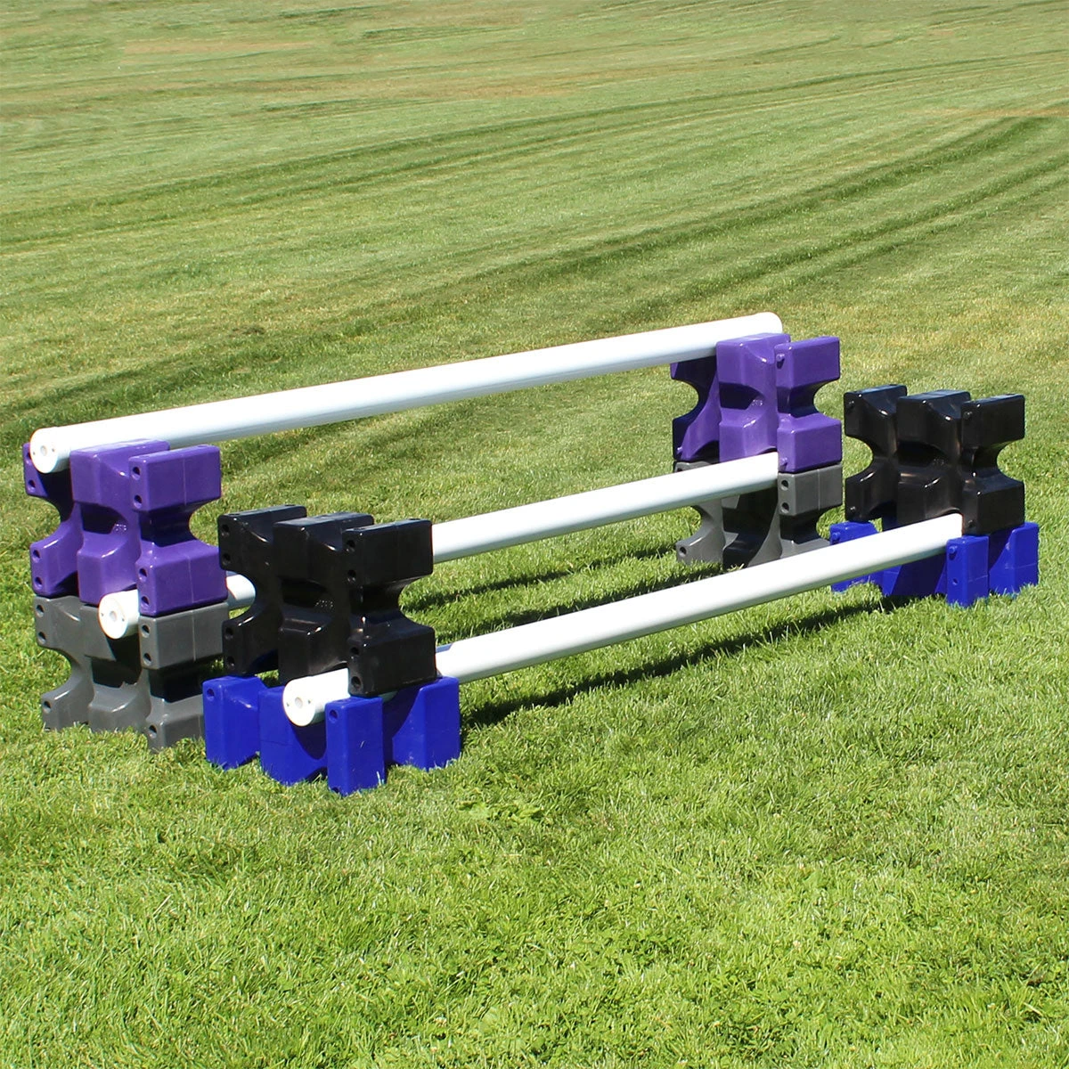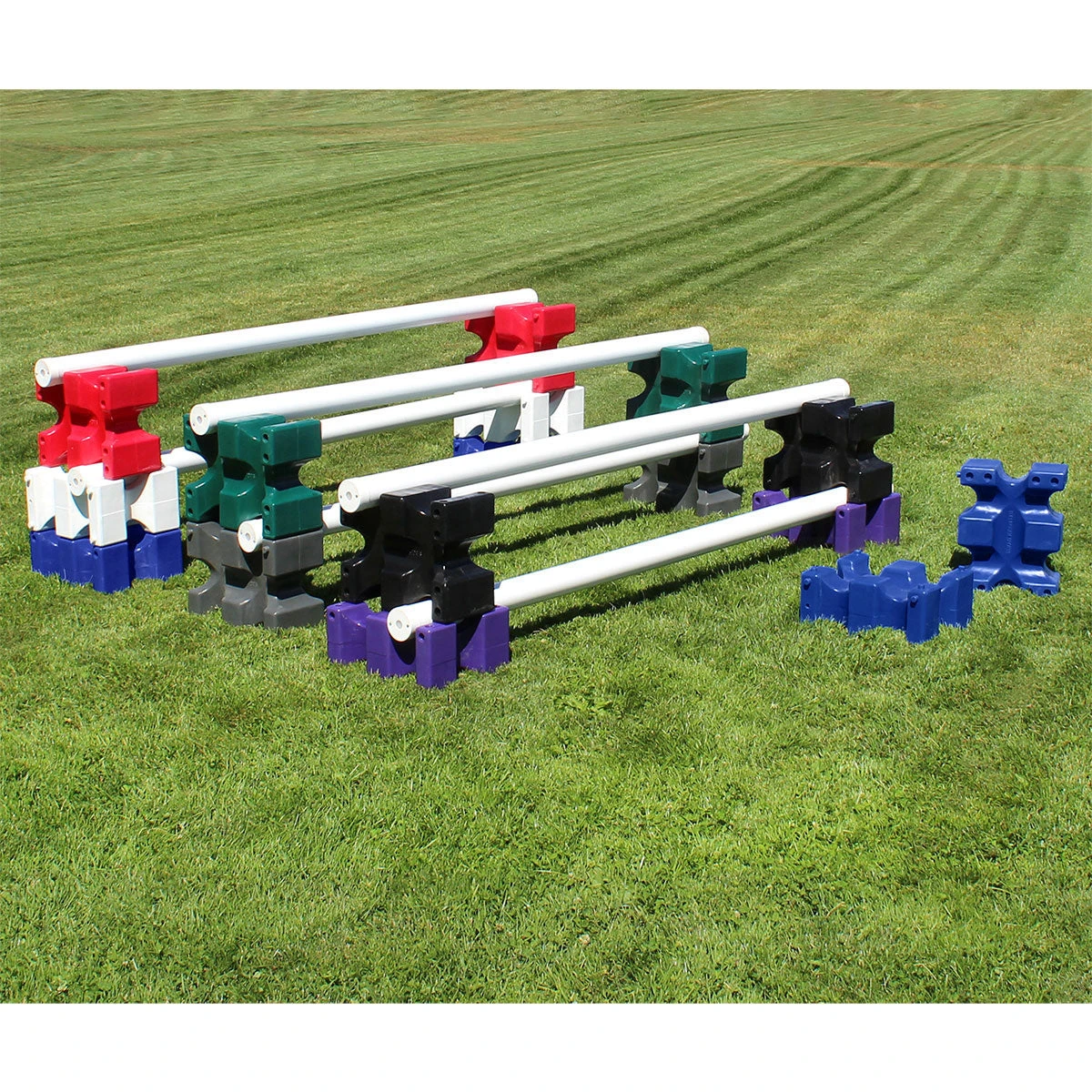 SHIPS FREE! The Riser Max Jump Blocks from Burlingham Sports are a must have for at-home schooling and training exercises. Easily portable, the unique design of these blocks can be stacked two ways, either laying flat or standing upright for nearly an unlimited variety of positions and configurations. The peg-in-hole stacking feature securely fits blocks together. Made of single mold poly, these jump blocks will last you for years, without knocking over at the slightest breeze. These jump blocks are more secure, stable and versatile than anything you have used before. Mix and match different colors for a fun course design! Sold in pairs. Made in the USA.