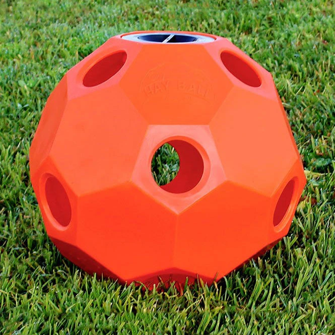 The Burlingham Sports Hay Ball Feeder is an innovative way to feed your horse its daily forage intake. The Hay Ball Feeder simulates a natural grazing position and is suitable for use indoors or outdoors for horses, ponies, goats, and sheep. Highly durable and easy to fill. Great for horses that are on a diet or prefer to limit hay intake. Made in the USA. *Not intended for Miniature Horses.