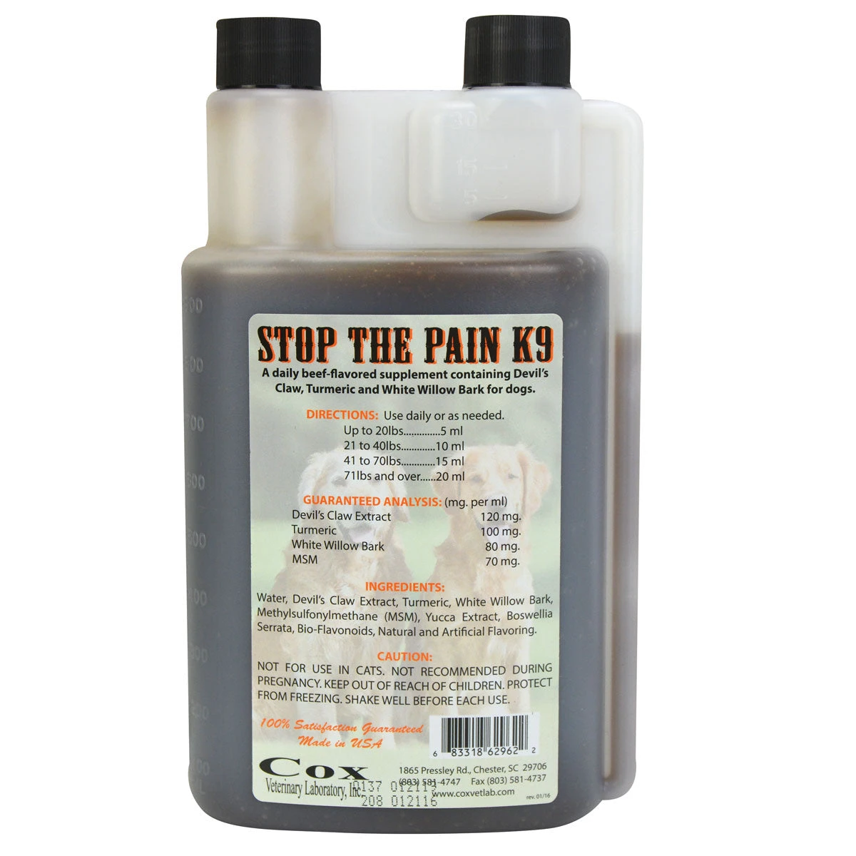 K9 Stop The Pain by Cox Vet Labs is a pain management supplement for dogs. Formulated with Devil’s Claw, Turmeric and White Willow Back to promote normal inflammatory response and support joint health.