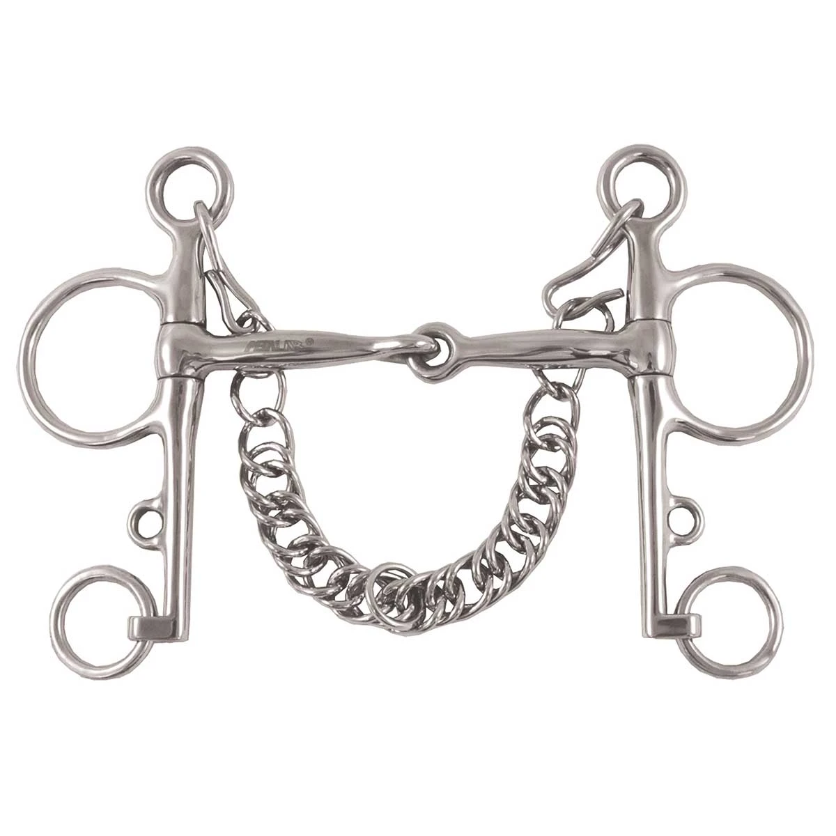 Korsteel Tom Thumb Jointed Pelham Bit features 4 inch cheeks, and snaffle mouthpiece. The shorter cheeks are considered to be milder than longer cheeked pelhams, but providing more leverage than a loose ring or eggbutt snaffle. For use with 2 reins or bit converters and a single rein.