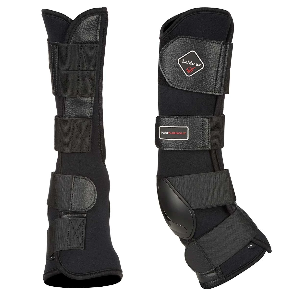 The LeMieux Turnout Boots are like your favorite Country Boots, but for your horse! Ideal for protection against crud buildup from turnout, or horses with sensitive skin, these boots are ideal for 3-season turnout. Anti bacterial ventilated neoprene avoids rubbing & sweat build-up. Elasticated and angled strap positions allow movement with optimum fit. Durable skid cap positions boot correctly on back of the joint. Can be used on either front or hind legs; sold in pairs.
