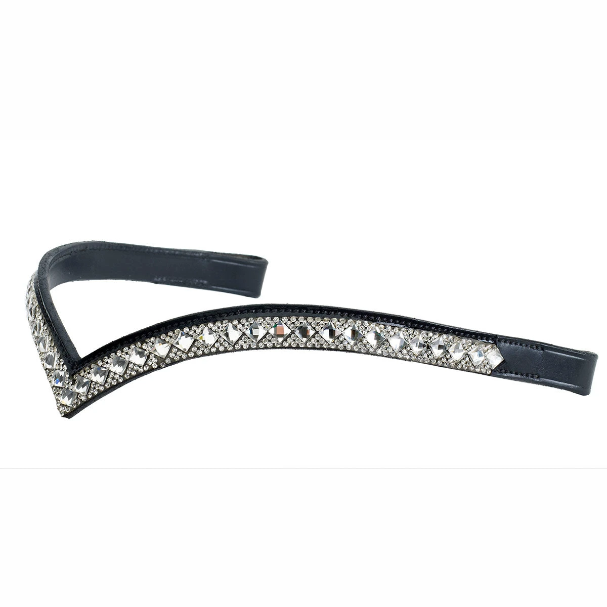 Ovation Veronica V-Shaped Browband is softly padded featuring shimmering clear round rhinestones in an chain pattern, a perfect way to add a little shine to your ride. Can easily replace most existing browbands for a quick and inexpensive update to your tack.