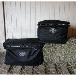 Whether you’re at home or on the go, the Professional’s Choice Folding Combo Feeder is perfect for feeding hay and grain! Made of durable 600 denier, PVC-coated Cordura nylon, this feeder folds down when not in use for easy stow-and-go transport. Can also be used for holding other small equipment or boots with the adjustable straps over fences, stalls, gates, and more. Adjustable straps allow for the perfect height. The soft fabric is great for holding feed and hay during trailer rides, protecting from bumps and scrapes when hauling while allowing plenty of depth for them to graze.