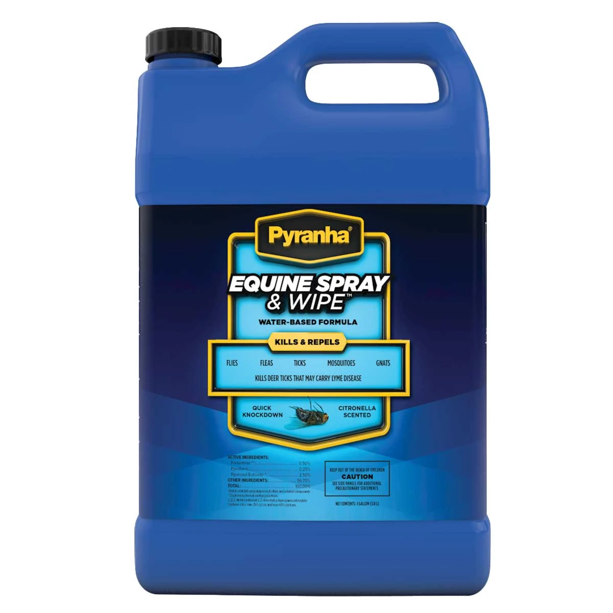 Pyranha Equine Spray and Wipe is a water-based, advanced horse fly spray that quickly kills and repels flying and biting insects like mosquitoes, flies, gnats and others.