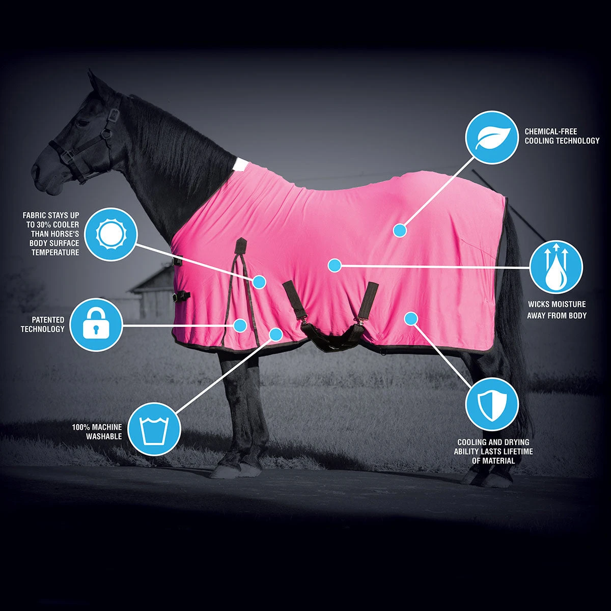 CoolAid products offer your horse the ultimate cooling action with patented Coolcore material. This award-winning, chemical-free cooling fabric offers the ultimate combination of wicking, moisture transportation and regulated evaporation that keeps the material 30% cooler than the surface temperature. This 100% machine-washable fabric works to move sweat away from the body while accelerating drying and providing a consistent cooling effect. Since Coolcore is chemical-free, the cooling performance of these products will never wash out or deteriorate over time.