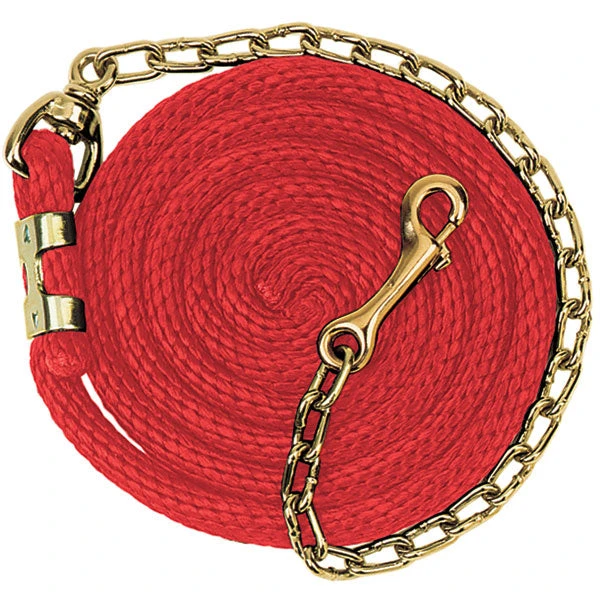 Weaver Leather Poly Lead for Horses. This premium polypropylene lead is sized for horses and ponies. Features a soft, broken-in feel you’ll love! Made with a brass plated swivel snap and brass plated 24 inch chain. Ideal length of 8 feet. Easy to grip 5/8 inch width.